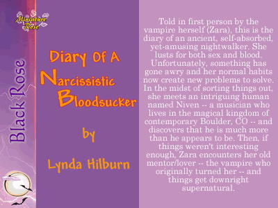 Lynda Hilburn's Diary Of A Narcissistic Bloodsucker is a fascinating novella that had me hooked from the very first page! Told in the first person by Zara, this tale actively engages the reader in the plot in a way that I have yet to come across in other writings. As a character, Zara is brilliantly developed. She is completely selfish and self-absorbed, and whilst not your typical heroine she is nevertheless bound to strike a chord in you; you will love her pure shamelessness and complete lack of inhibitions or modesty. The plot is well developed and paced excellently, and you know not where Zara will take you next. There are sex scenes and they do get described in detail, but this is not a romance. The entire tale will come as a delightful surprise, and you are bound to read this fabulous tale again and again. I give my congratulations to Ms. Hilburn on concocting this delectable story and shamelessly request further episodes!